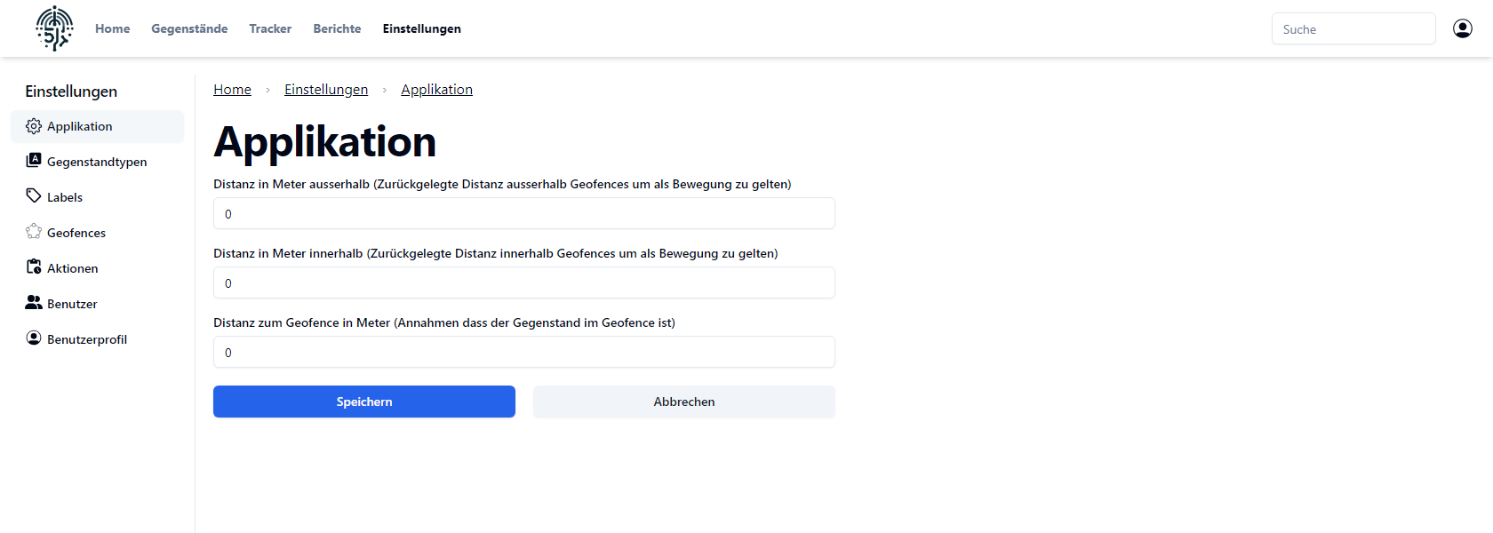 Hier können Parameter für die gesamte Applikation eingestellt werden. Die Parameter werden für Reports, Aktionen und die Anzeige auf der Oberfläche verwendet. Wenn neue Parameter gespeichert werden, passt sich die Applikation dynamisch daran an.