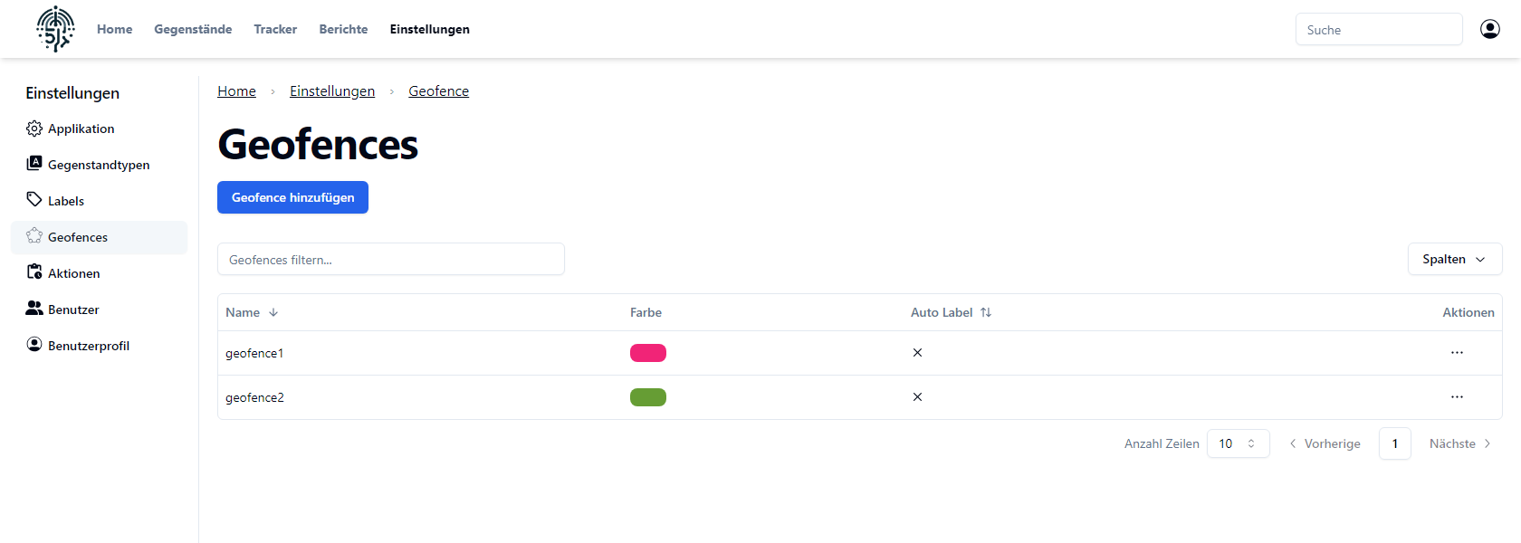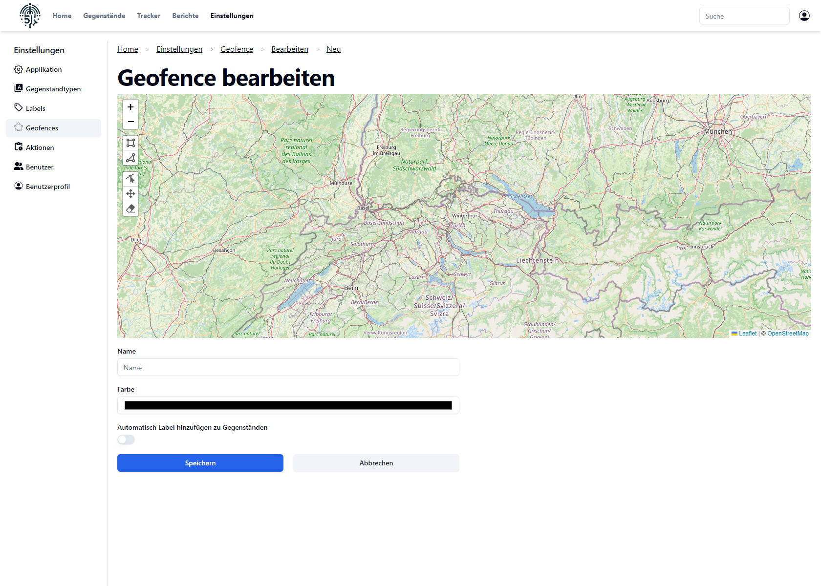Geofences können für Aktionen benutzt werden und auf der Übersichtskarte dargestellt werden.