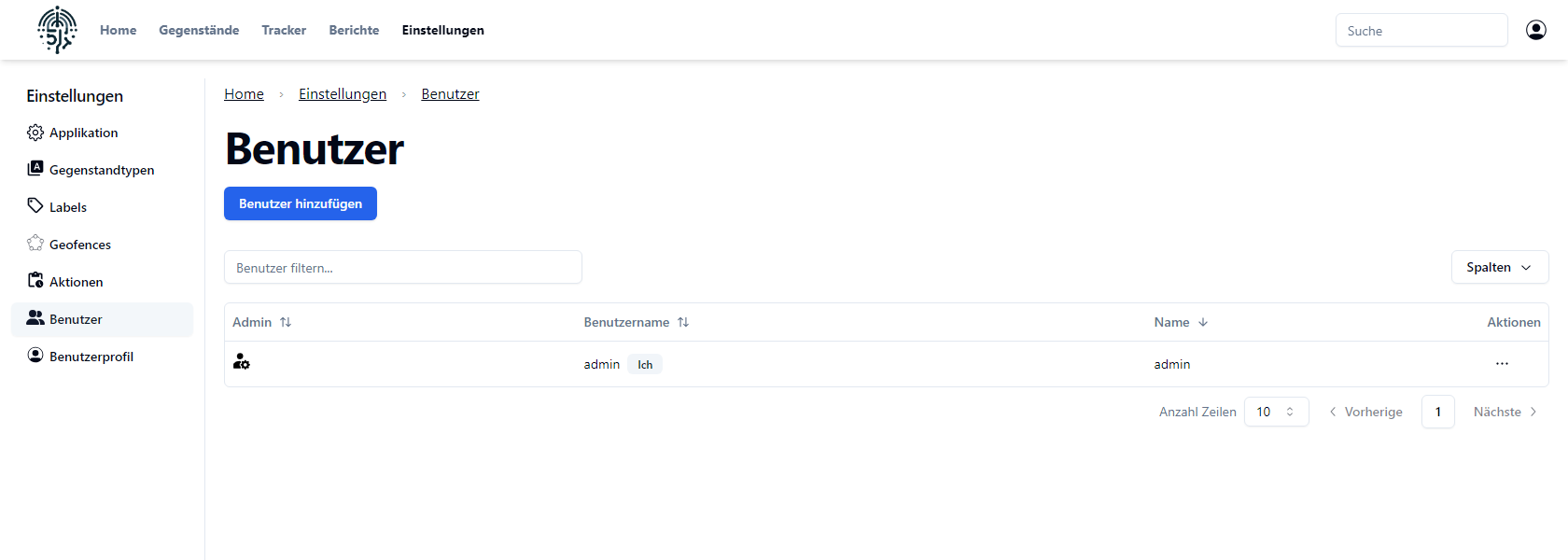 Zeigt die Liste der hinterlegten Benutzer an. Neue Benutzer können nur von Administrationsbenutzern angelegt werden.